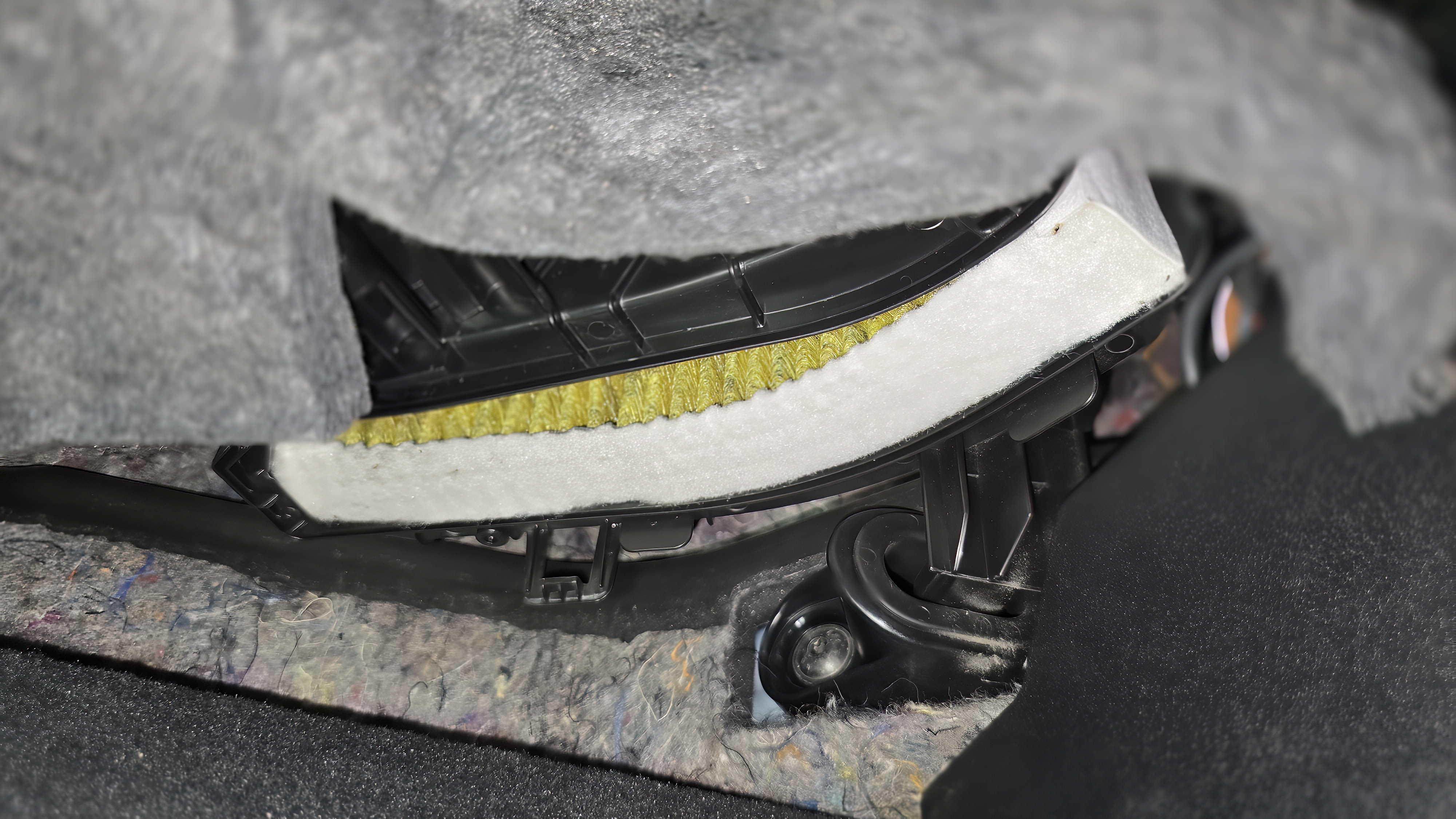 공조기 하단 커버까지 분리하면 이렇게 기존 에어컨 필터가 장착된 걸 볼 수 있습니다.